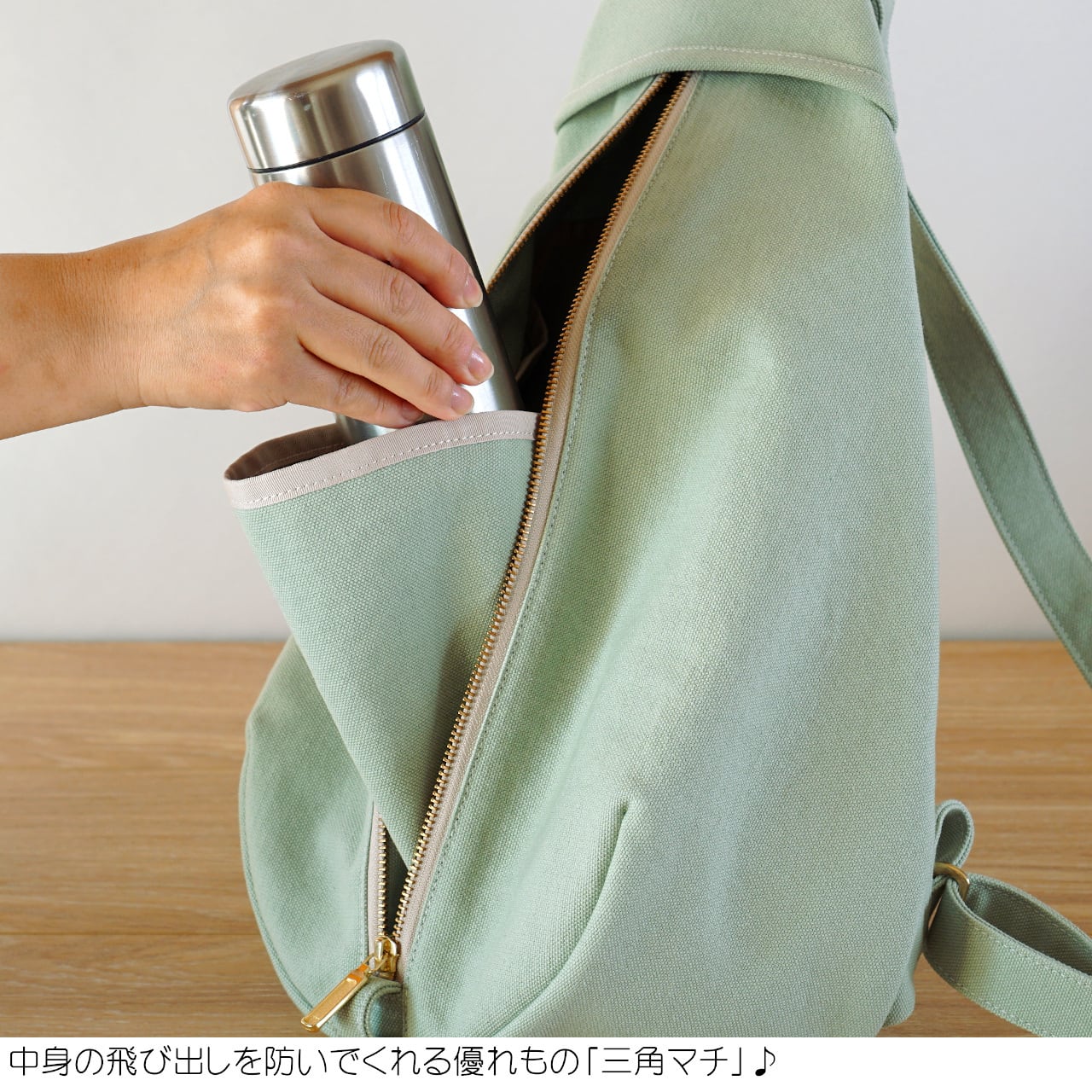 もっと多くの方に当店人気リュック「ベリー」を体感していただきたく縫製工程等を見直し、プライスダウンいたしました!また付属のカラーを変更して、老若男女問わずお持ちいただける落ち着いた雰囲気に生まれ変わりました☆(形、仕様はベリーと同じです)こだわりの型紙と丁寧な縫製で作られたリラックスできる「しずく型」の優しいフォルムが特徴的で、丈夫な帆布を2重に仕立て、型崩れしにくくカワイイしずく型をキープします!正面の縦ファスナーはカーブがないため引っ掛かりにくくワンアクションでスムーズに開閉できます!ファスナーを閉める際に便利な「指引っ掛けタブ」や中身の飛び出しを防ぐ「三角マチ」など使いやすさも抜群です!さらに防犯のため正面の縦ファスナーには「オートマチックロック機能(※1)」「スライダー収納」を設けました。収納面ではサッと出し入れできる外側背面の大きなポケット、内側には小物類がしっかり整頓できる3つのポケットを配置☆デザインと機能が合理的に合わさったHanp Bag Troccoの代表作です。
